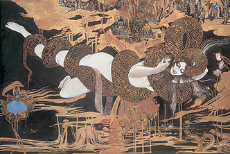 Yoshitaka Amano is an international multi-talented artist as a painter, character designer, and illustrator. This exhibition shows the overall picture of his magnificent talent through his works from early age to present. Also Amano had designed some stage arts and costumes, with his good imagination and creativity, he has bounded to do great things with the times. And his works is fantastic, amorous, dynamic and extremely delicate; those are based on his special techniques.