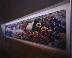 Efflorescent works of art fill the space; Monet shows his flowers and landscapes, Shinji Ohmaki produced an installation that renders the flowers and hues of Kumamoto, Mika Ninagawa demonstrates her newly produced flower photographs, Satoko Nachi introduces her new paintings of the flowers and her imagined scenery, especially for this occasion. Furthermore, Monet’s “Water Lilies” (1920, The Museum of Modern Art, New York), the enlarged details and full size photograph of which by Yasuhiro Ishimoto highlight the exhibition. The Japanese representing photographer gave new life to the masterpiece, and the “Water Lilies” greet us with a fresh image. |