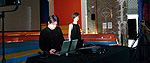 | The exhibitor Hiroshi Ishiguro(roboticist at Osaka University) , Keiichiro Shibuya(musician), and Takashi Ikegami(complex system researcher at Tokyo University) talk about the relationship of art and science. After the talk, Shibuya plays with android robot Kouka-roid. |