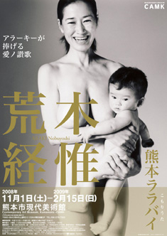 本展では、2007年以降に生まれた赤ちゃんと母親を熊本で撮影した《母子像》シリーズ約40点を展示します。母子の絆と生命力が溢れた写真は、生きる歓びに満ちており、作家にとっての新たな展開を示すものであります。この輝ける母子への讃歌として撮り下ろした、《色淫花》シリーズも展示します。加えて、《母子像》シリーズの撮影風景と荒木が2006年に審査員を務めた「熊本市民美術展 アートパレード」での熊本滞在の様子を記録したドキュメンタリー映像、過去の代表作から最新作、スライドを使った映像作品《アラキネマ》など、荒木のこれまでの軌跡を一挙にご紹介します。 |