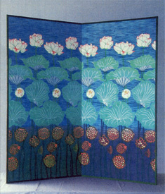 2m×7mの巨大屏風に、出品作家瀧下和之が公開制作で熊本城を描きます。手形をプリントして石垣にみたてる作品参加もできます。