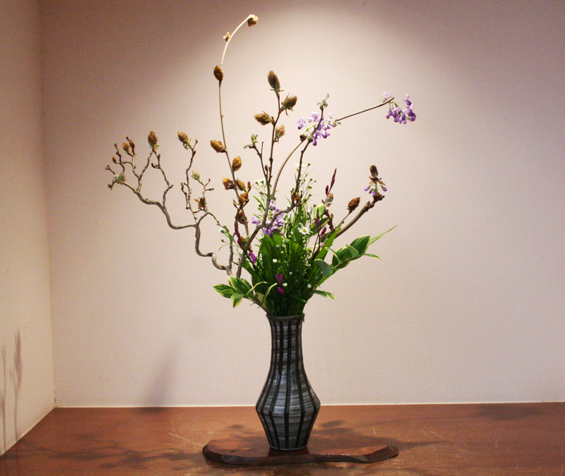 垂れ下る花房の自然さを初夏らしく活けました。