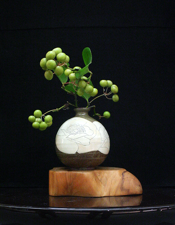 小さな器に山帰来が暑さをやわらげていればと思い、生けました。