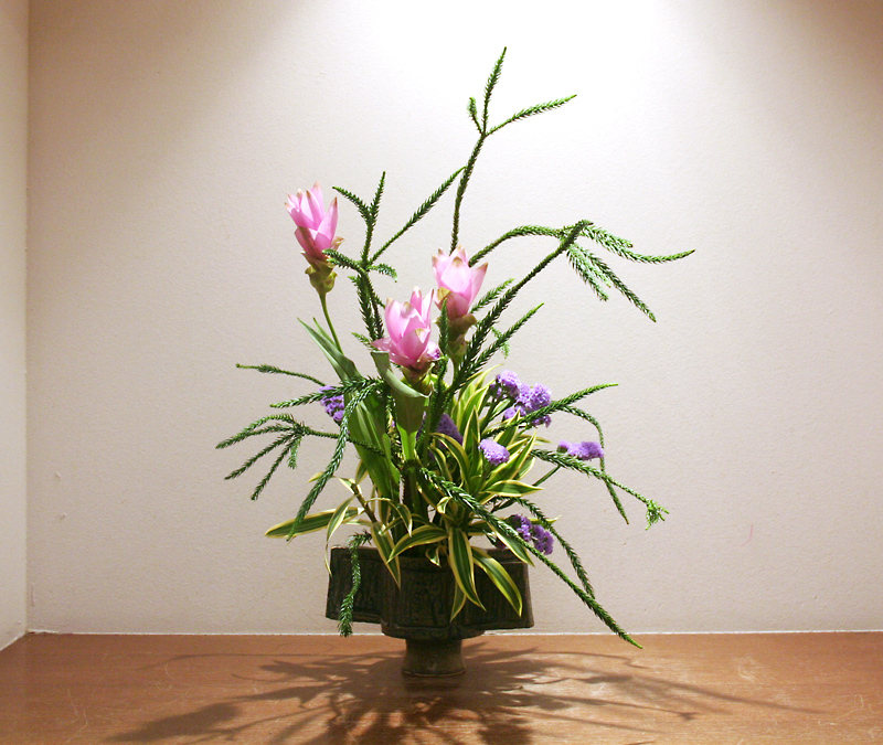 エニコウ杉を自由に動かして生けてます。