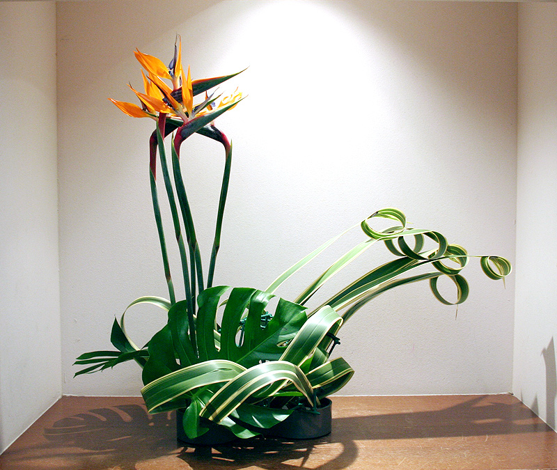極楽鳥の華やかさとみずみずしい葉物で、鳥を想像して下さい!