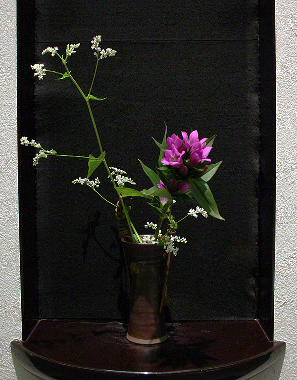 ピンクのりんどうと白い野草を組み合わせかわいらしさを表現してみました。