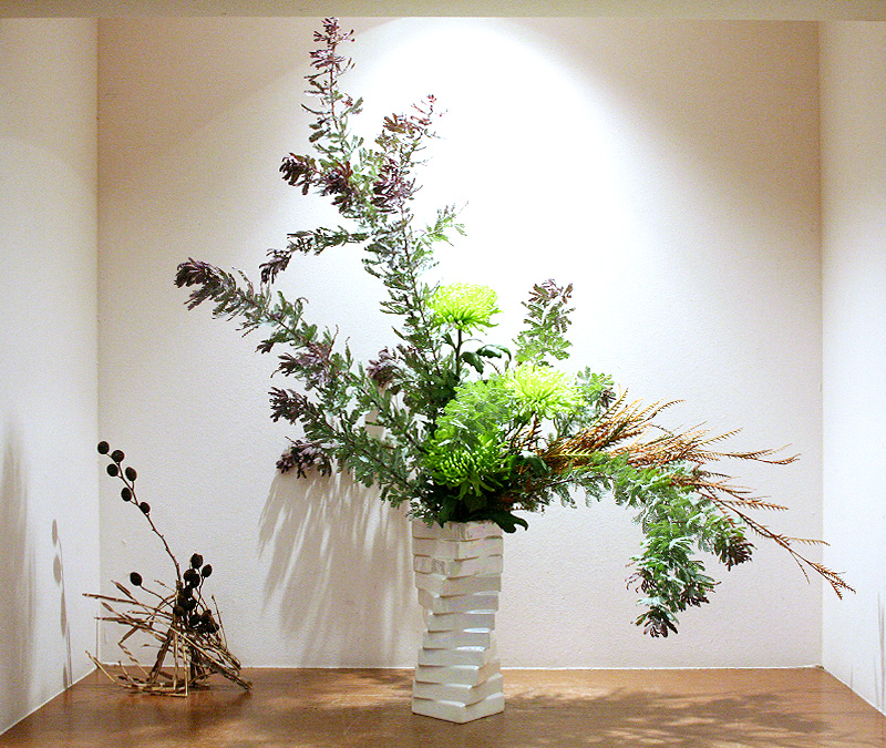 クリスマスとお正月の間、いける花材にまよいましたが、静かな年の瀬を表わしてみました。