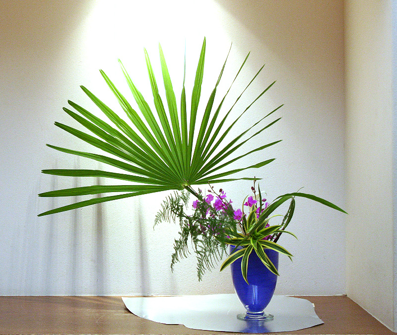 初秋のたたずまいを表現し、暑かった夏の日を思い出しながら生けてみました。