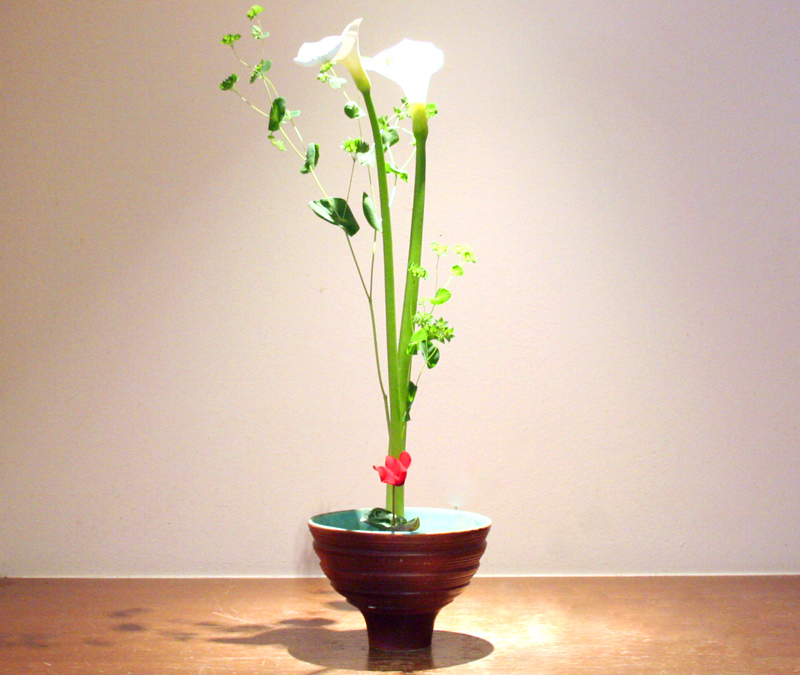 戸外はまだ寒い季節ですが、白いカラー赤いシクラメンに春を待つ心を込めてみました。