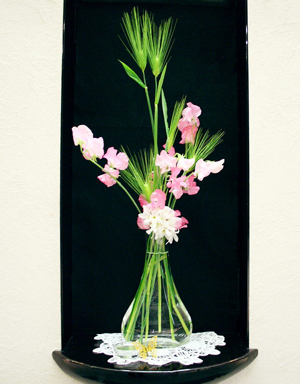 春の花、スイートピー。NHKのマッサンを思い出し、麦を入れてみました。