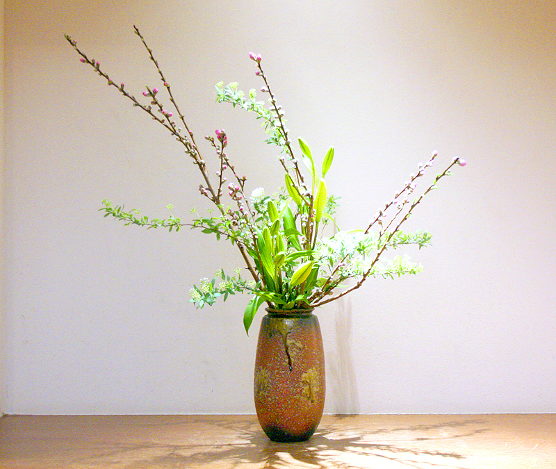伸びやかな枝の桃の花にスカシ百合を合せ、ひなまつりのイメージで活けました。