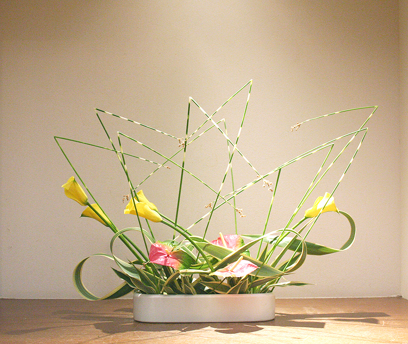 梅雨の晴れ間をイメージしてさわやかな色で生けてみました。