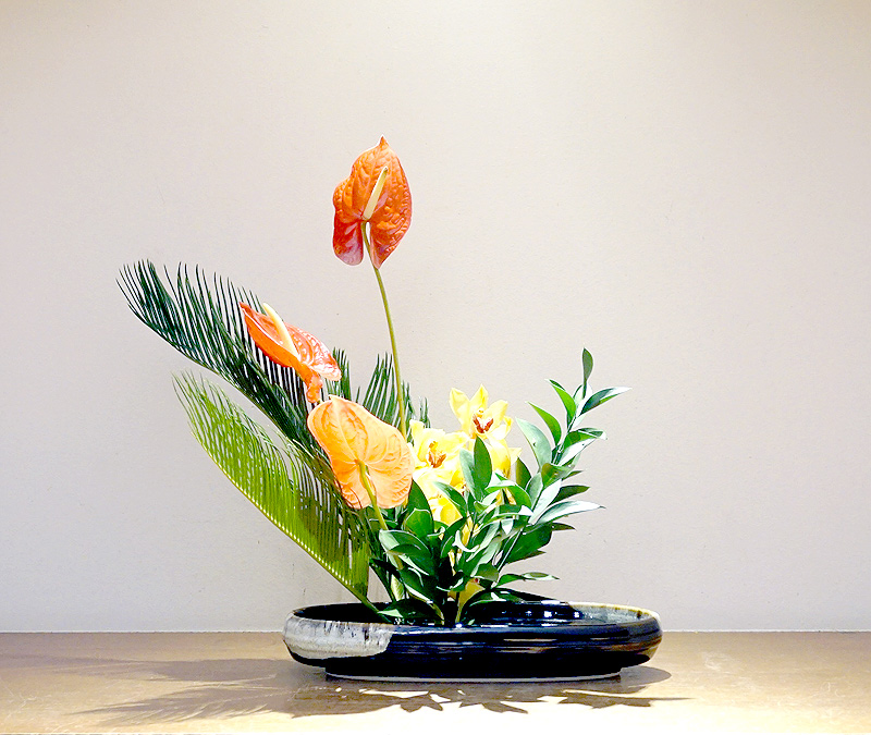 自宅以外の場で生けたのは、この度が初めてです。楽しく生けることができました。
