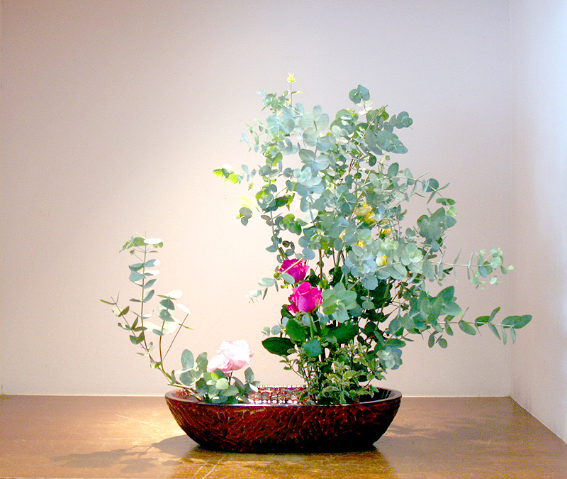 ユーカリの匂いが好きで、お客様をお迎えする気持ちで玄関をテーマに、生けてみました。