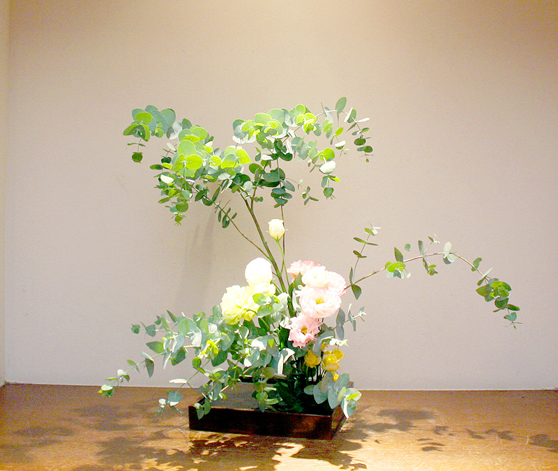 大好きなユーカリの花材が手に入りましたので大きくゆったりと生けてみました。